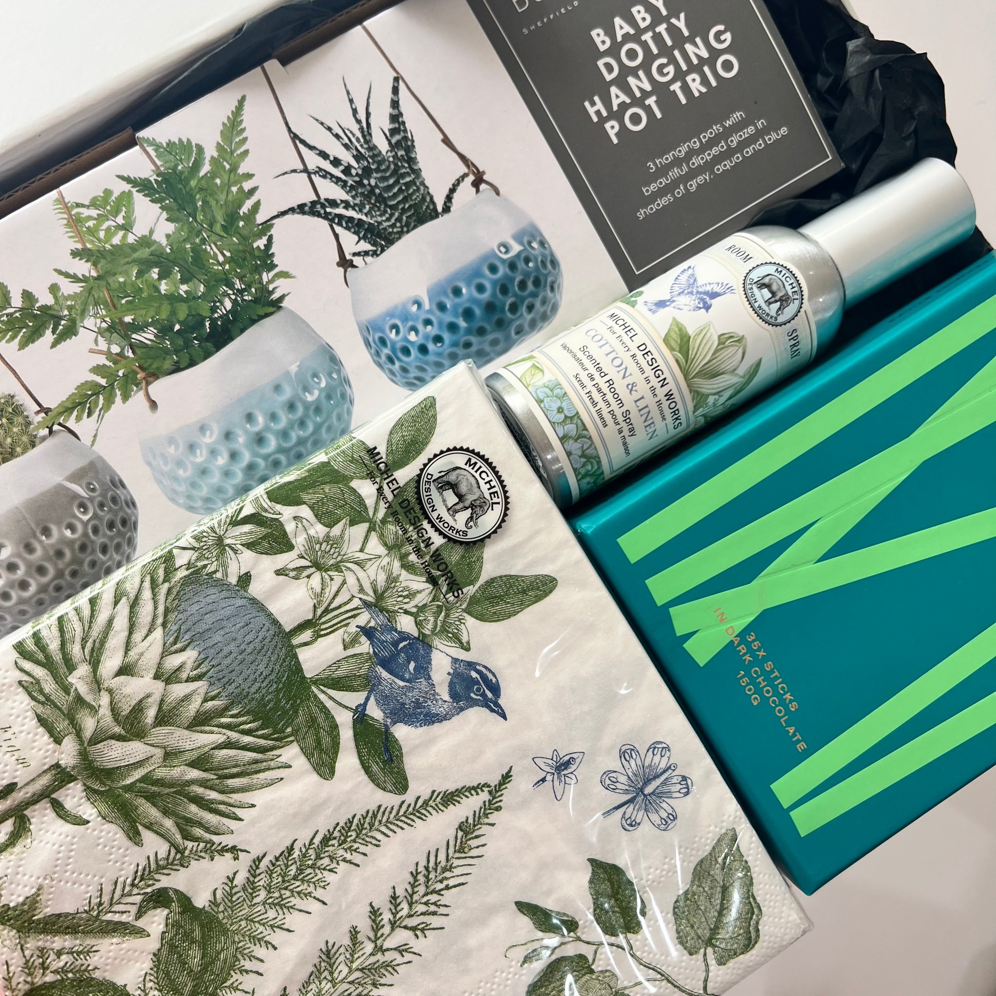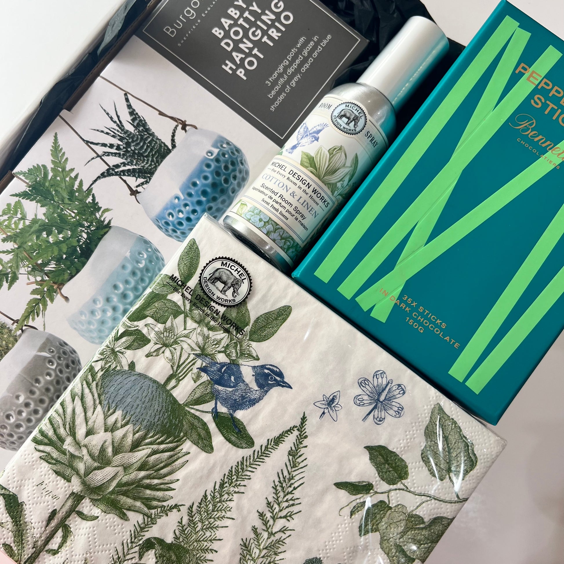 Substitutions - in the event that a product is unavailable we reserve the right to substitute a product of the same or higher value, and as close to your original item as possible. We pride ourselves on supporting small and local artisan businesses and love including their goods in our Gift Hampers. As a result, items can become unavailable on occasion and without a lot of notice. We will not substitute an item unless the quality and aesthetic meet our extremely high design standards. Props may have been used in some photographs, unless listed it is not included in the Gift Hamper.